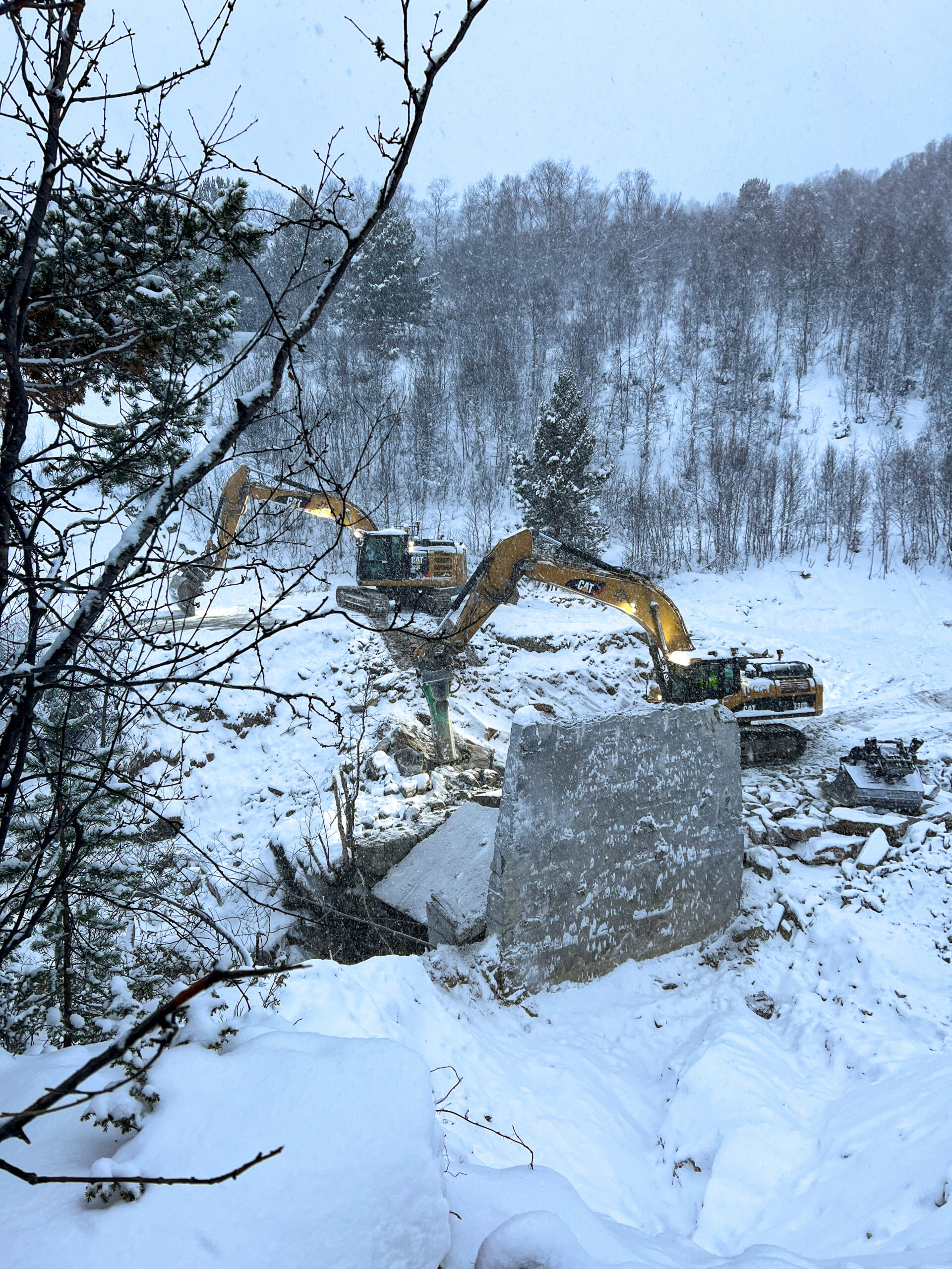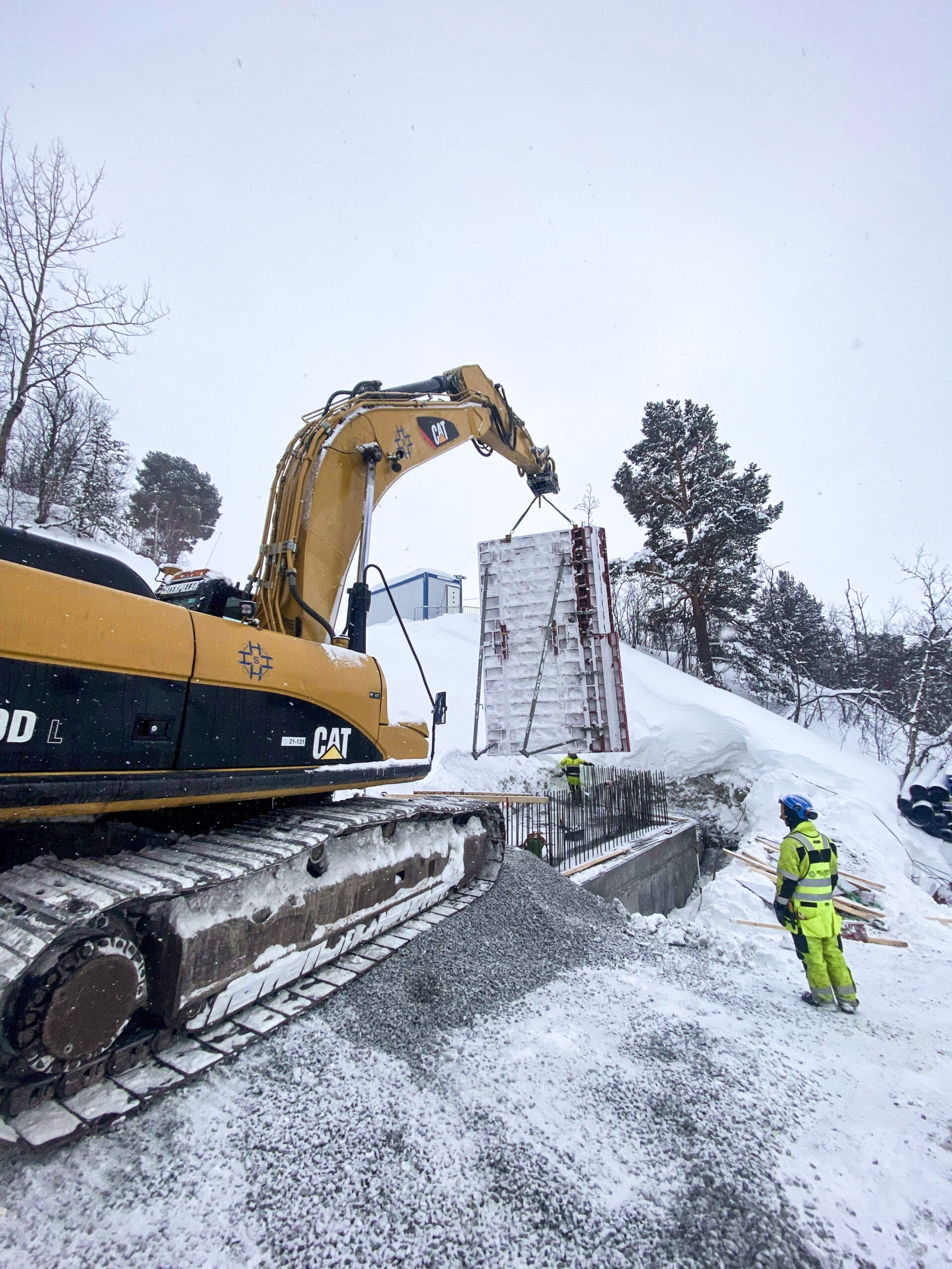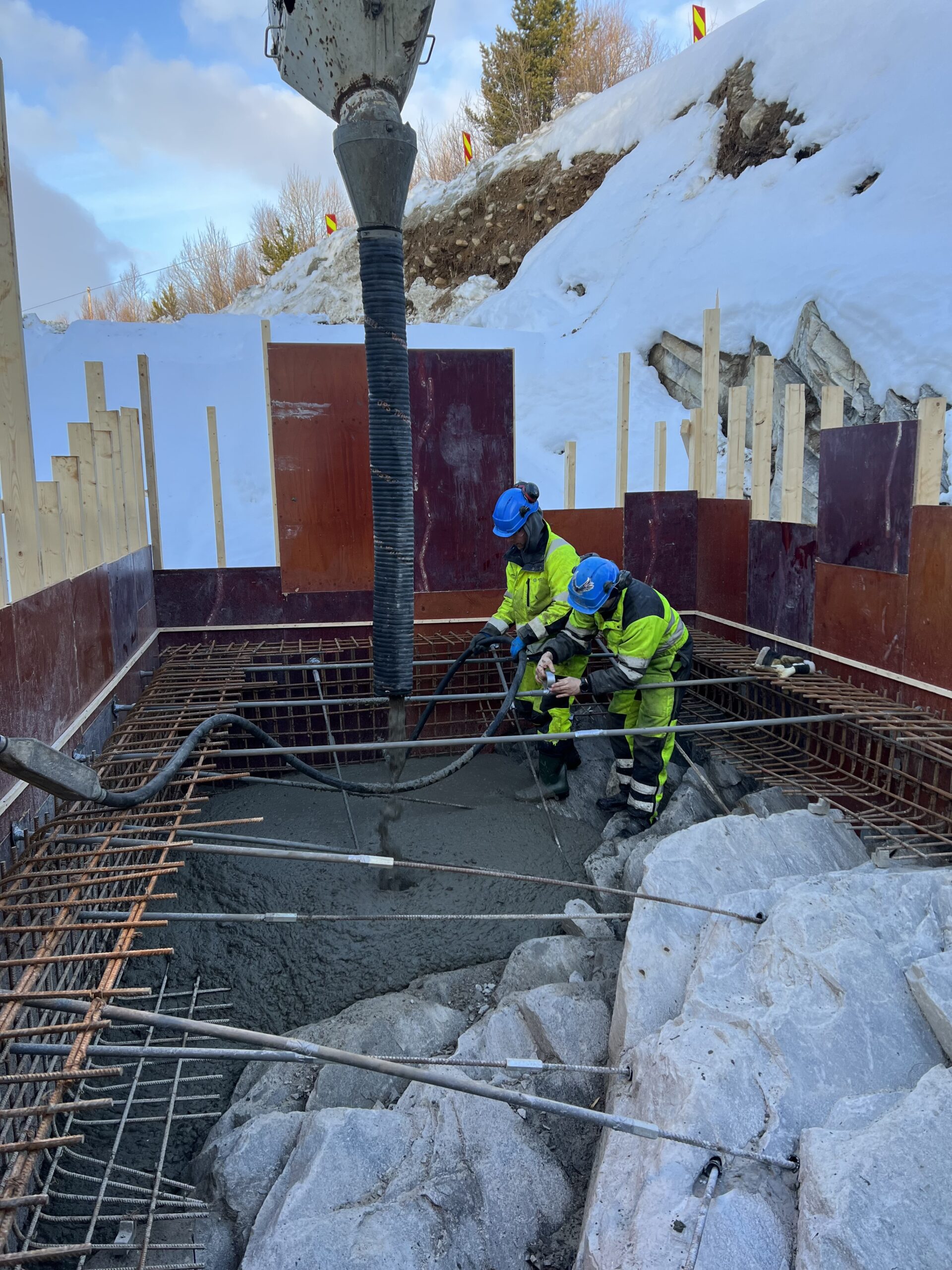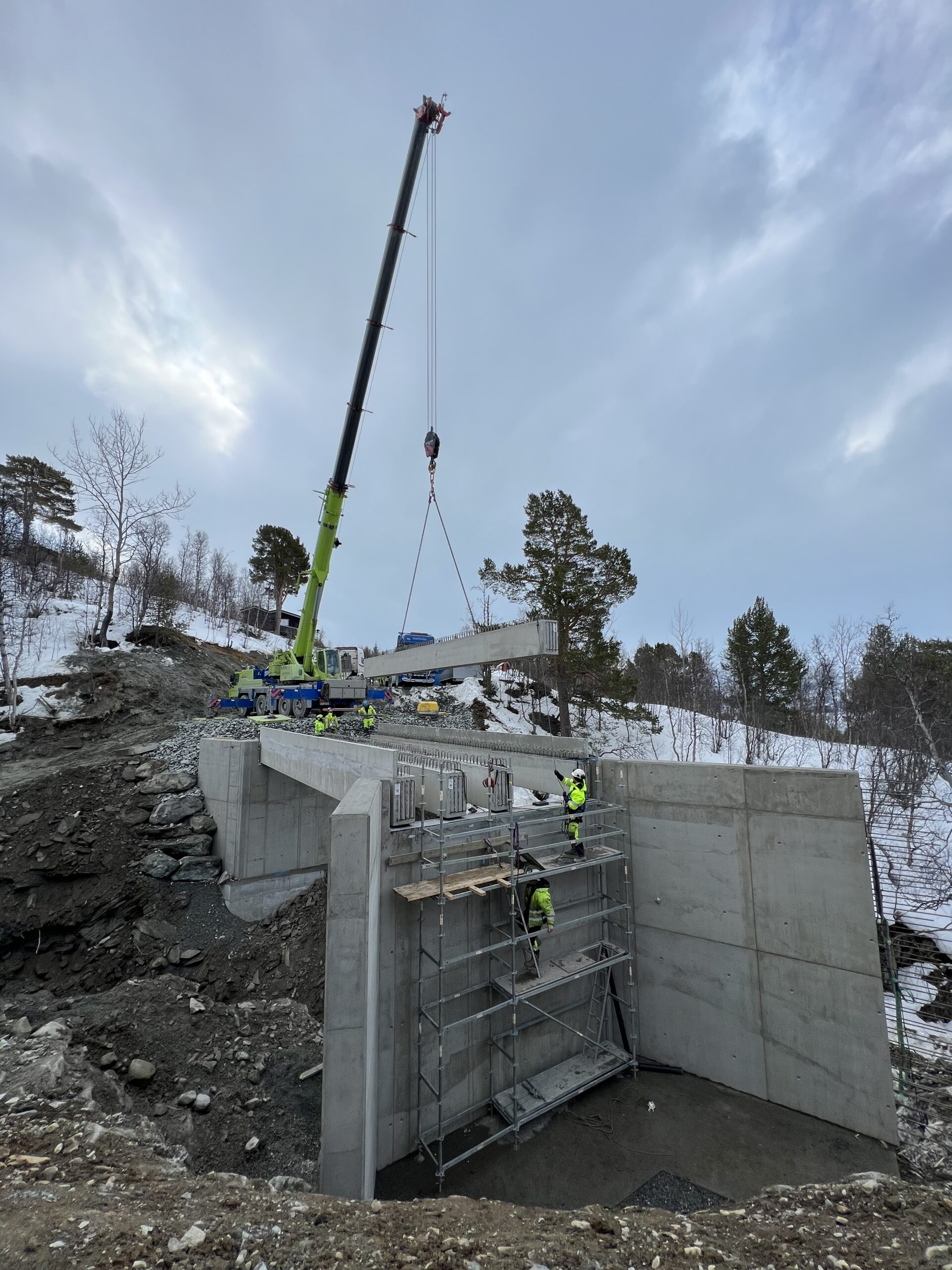 Vi hadde totalentreprise på dette prosjektet som besto av sanering av eksisterende bru, tilpasninger i grunn og forankring. Betongarbeider og levering av dekke til ny bru.